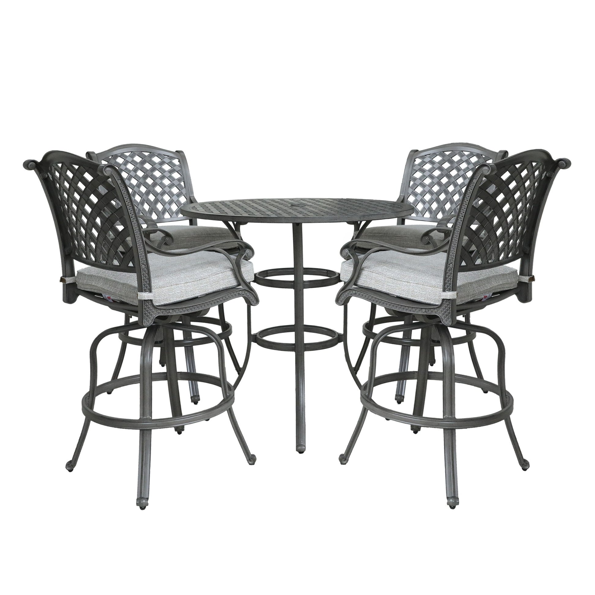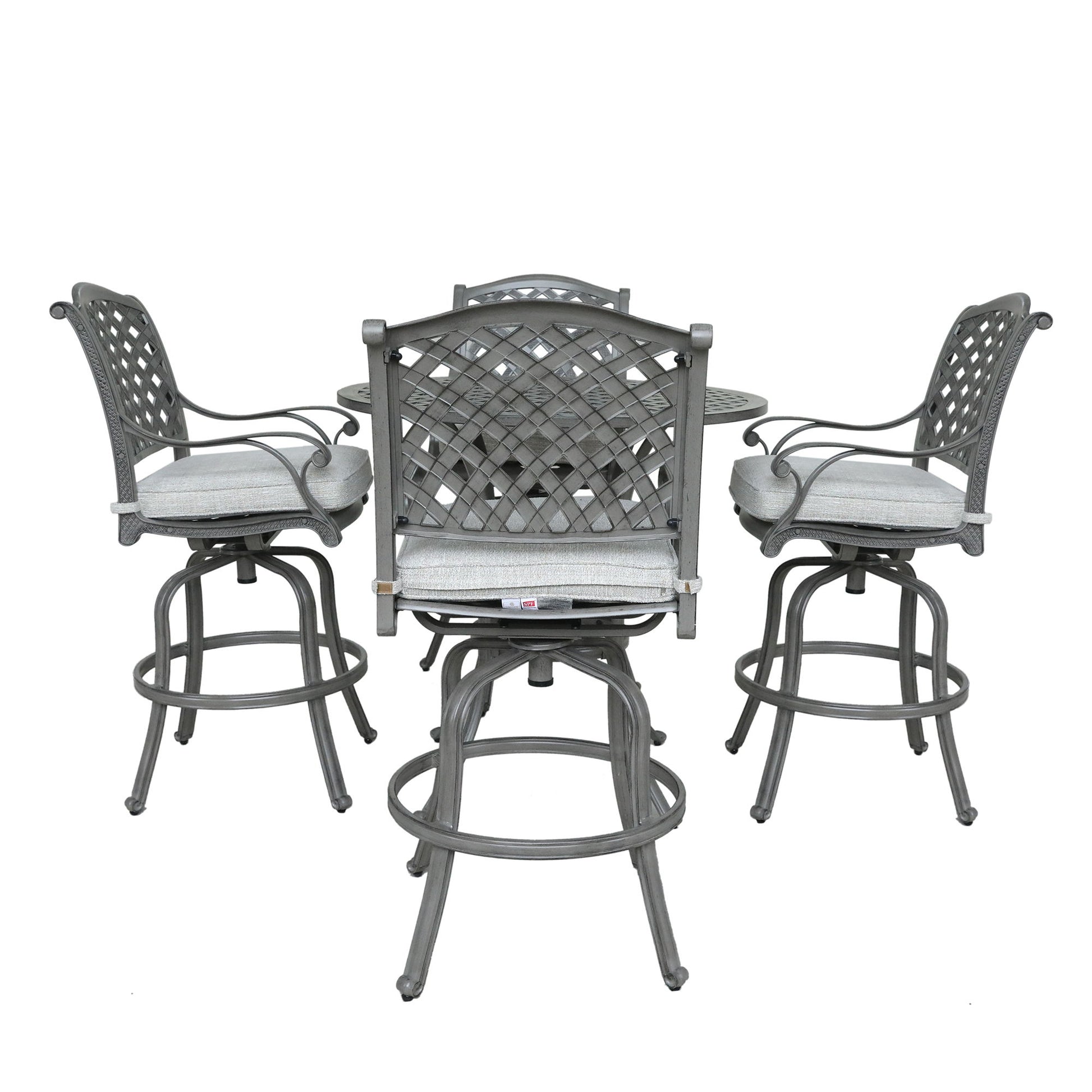 • Complete Set: Our All-Weather Bar Set Includes 4 Swivel Bar Stools And 1 Spacious Bar Table. Create Lasting Memories With Friends And Family While Enjoying The Comfort And Style Of Our Outdoor Furniture.