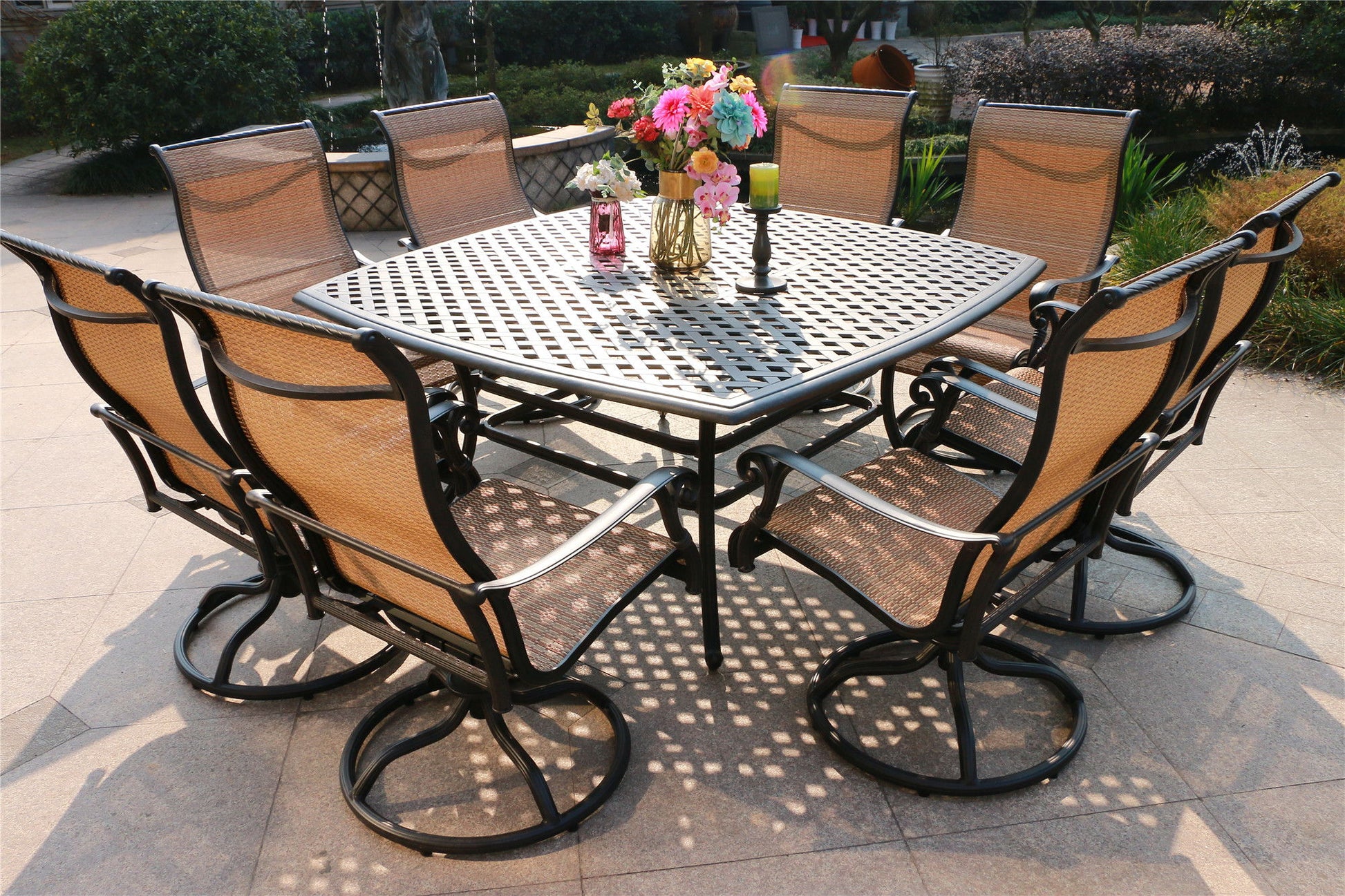 - Spacious Square Table: Large table with umbrella hole accommodates 8 guests for outdoor entertaining.