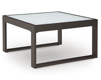 Sleek, contemporary style meets outdoor living in this coffee table. Its clean-lined black aluminum frame expertly balances good looks and longevity. A stunning top provides the natural stone look you love, while its glass construction weathers the seasons beautifully. With this coffee table on the back porch or poolside, you can confidently curate a luxe vibe.