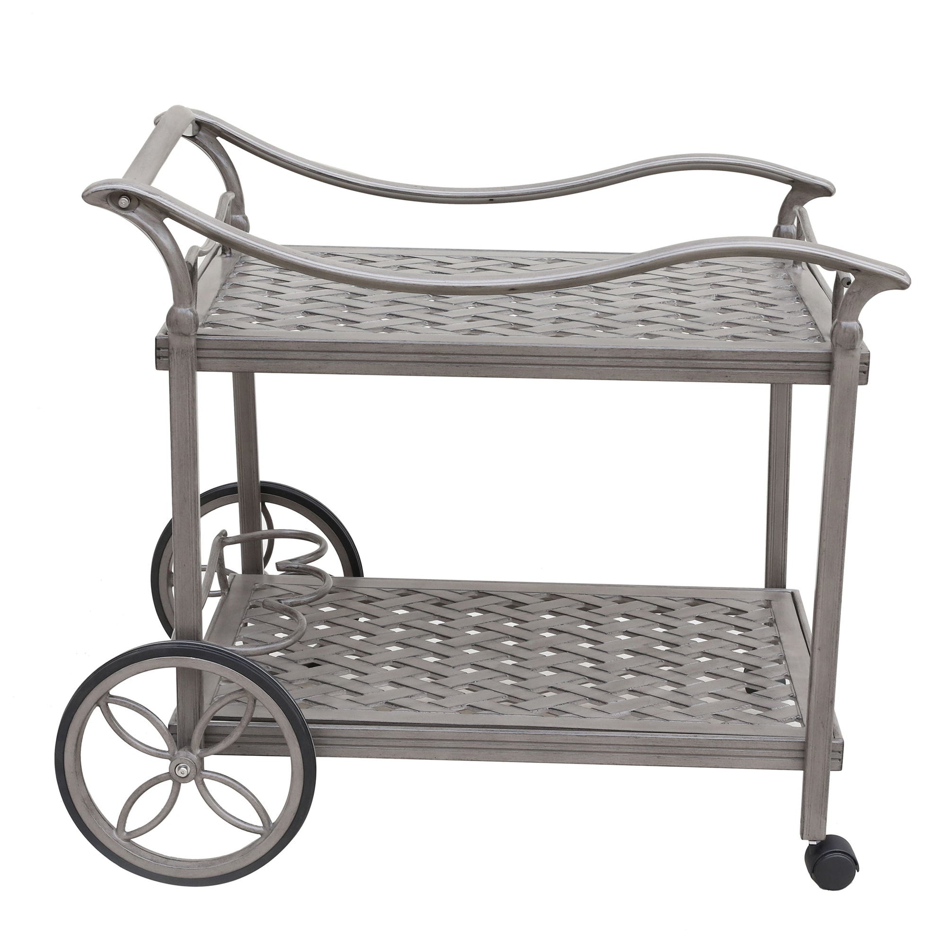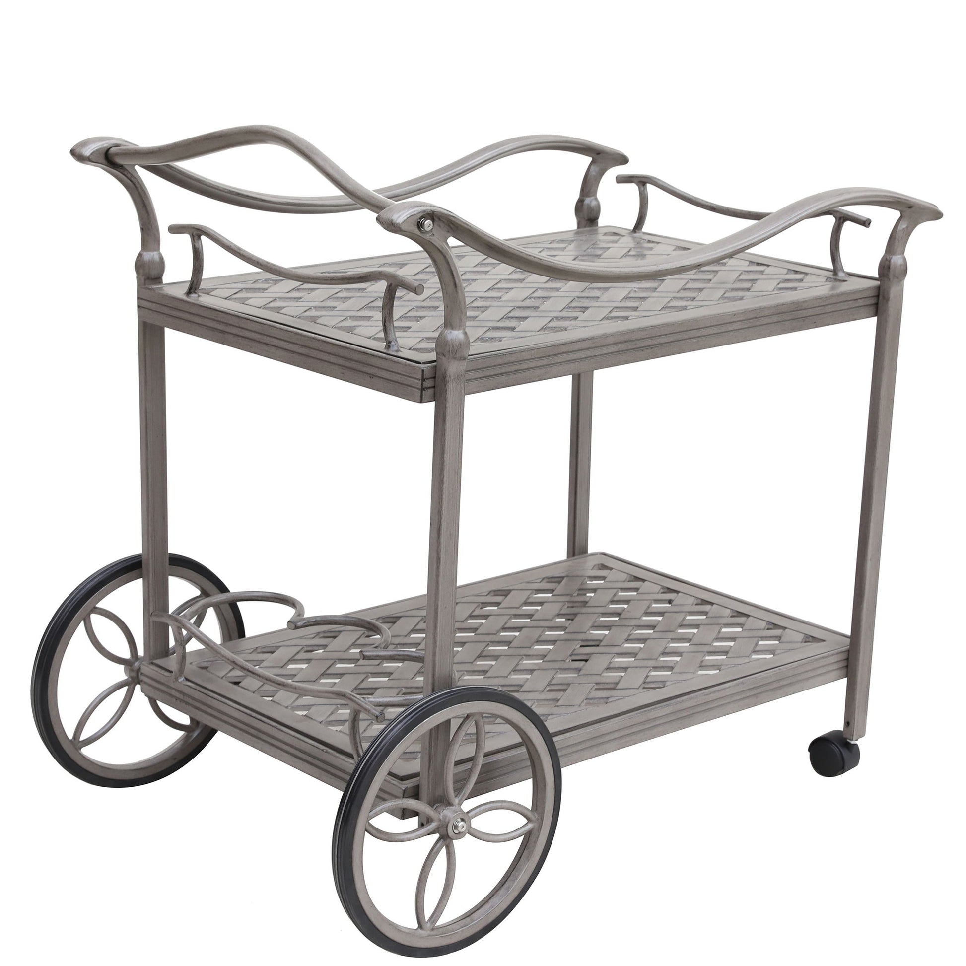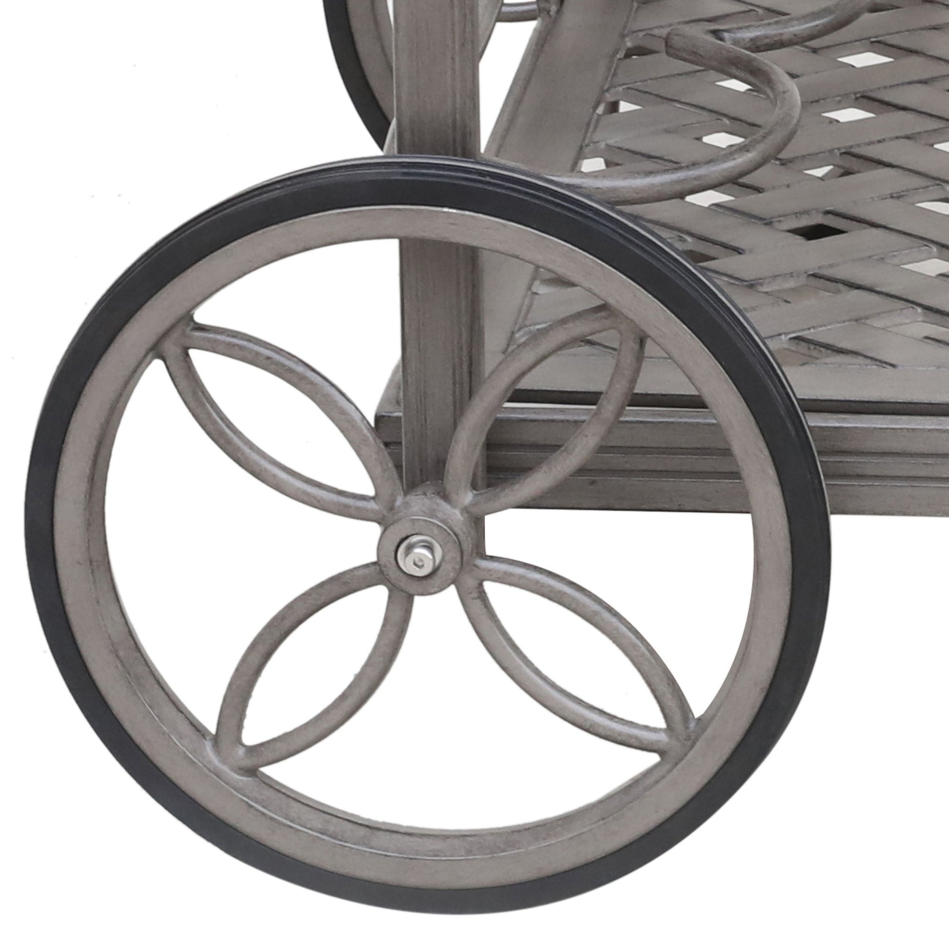 Cast Aluminum Outdoor Patio Serving Tea Cart With Wheels - Gray