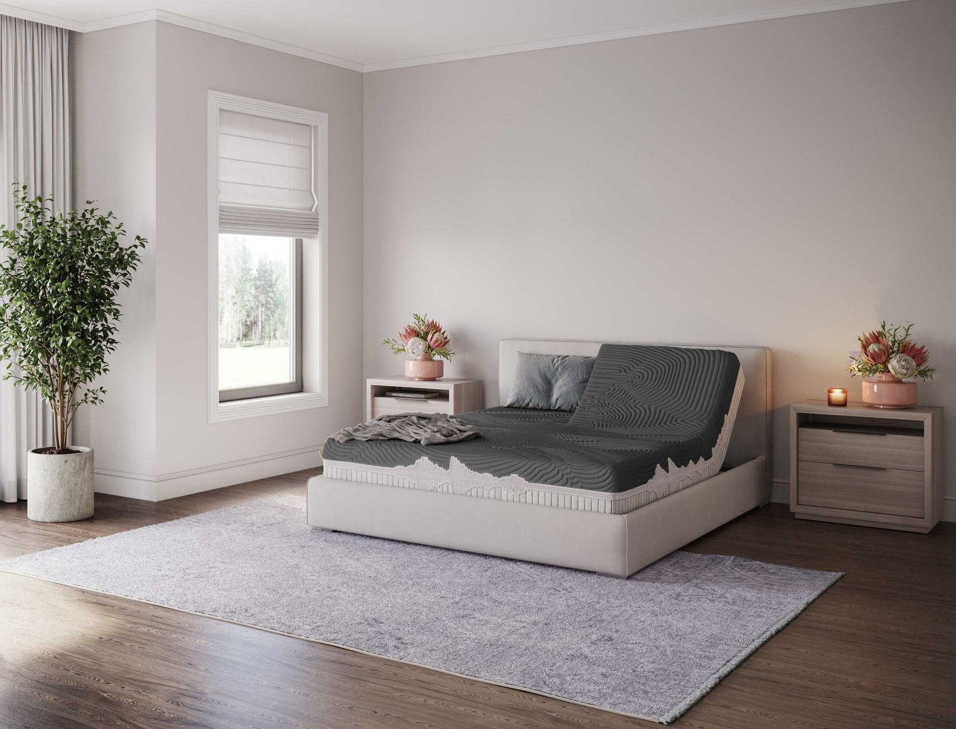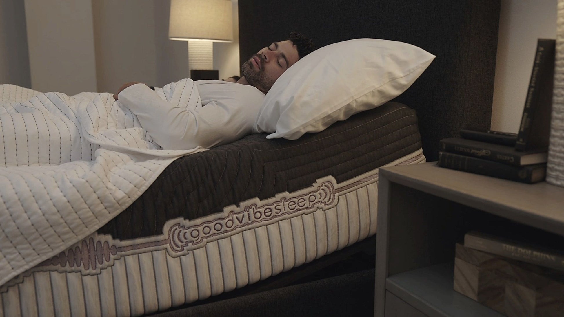 7 Layers working in concert to bring you the most relaxing experience Plush Layer - 1.5 inches Wave Eco-Friendly Foam is recyclable, Foam made with plant-based materials.Transition Layer - 1.5 inches Vibra Phase Foam harmonizes with the layers above and support layers below.Comfort Layer - 2 inches Acoustic Response GelCare Foam is high-tech, quick-response, cooling foam that provides temperature regulation and acoustic optimization.Support Layer - 6 inches Tri-Zone HarmoniCoil Spring System provides targeted comfort and support.Foundation Layer - 2 inches Poly Support inches Bass inches Foam provides structural support for spinal alignment and mattress longevity. Cross Knit Anti-Skid Cover is breathable, cool-to-the-touch and purpose-built to prevent the mattress from shifting.Mattress-in-a-box Conveniently ships in one carton right to your door for easy delivery and set up.Pair with the GoodVibeSleep Immersive Sound Adjustable Base