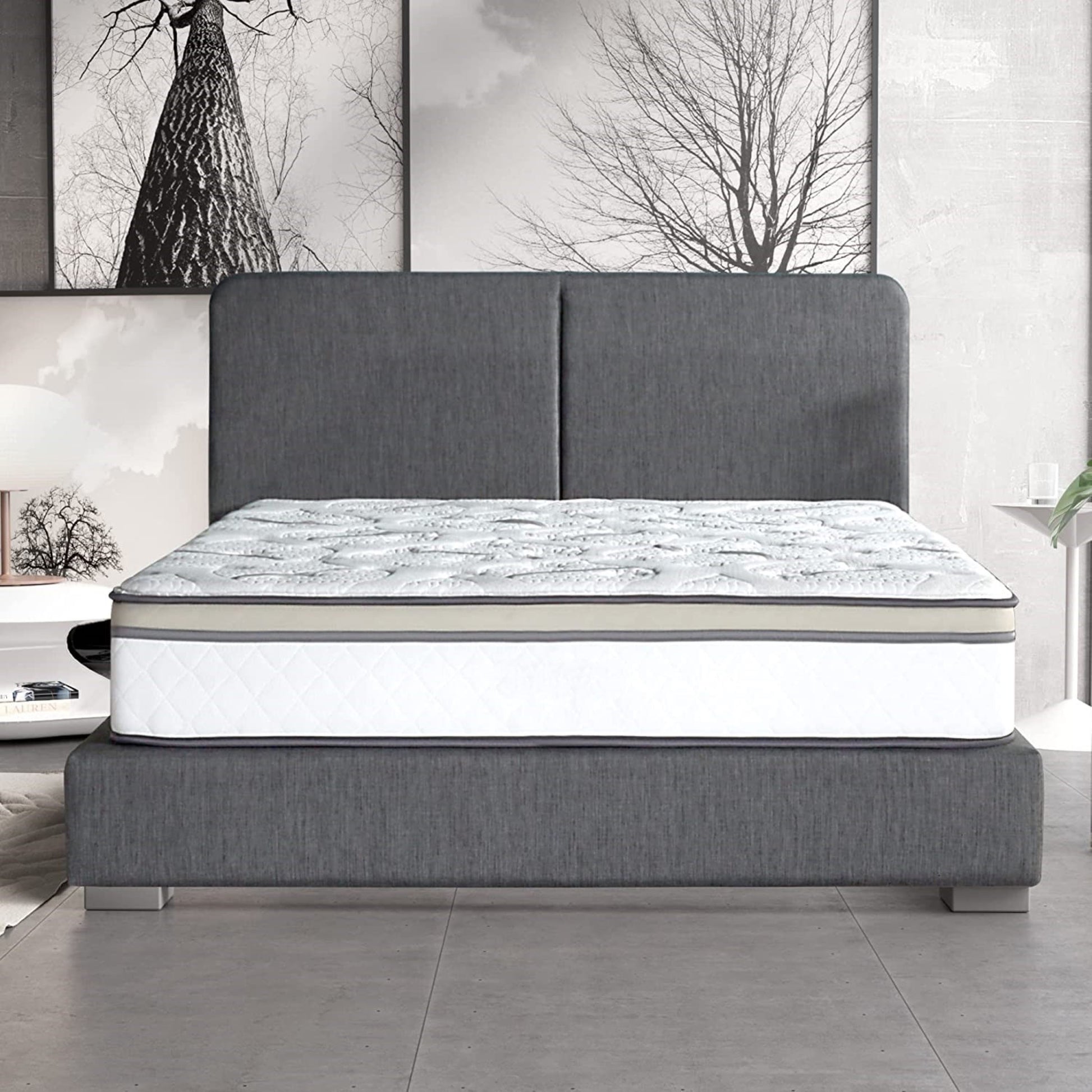 Twin Size 10" Majestic Medium Pillow-Top Cool Gel Memory Edge Support Pocket Spring Hybrid Mattress - White / Gray