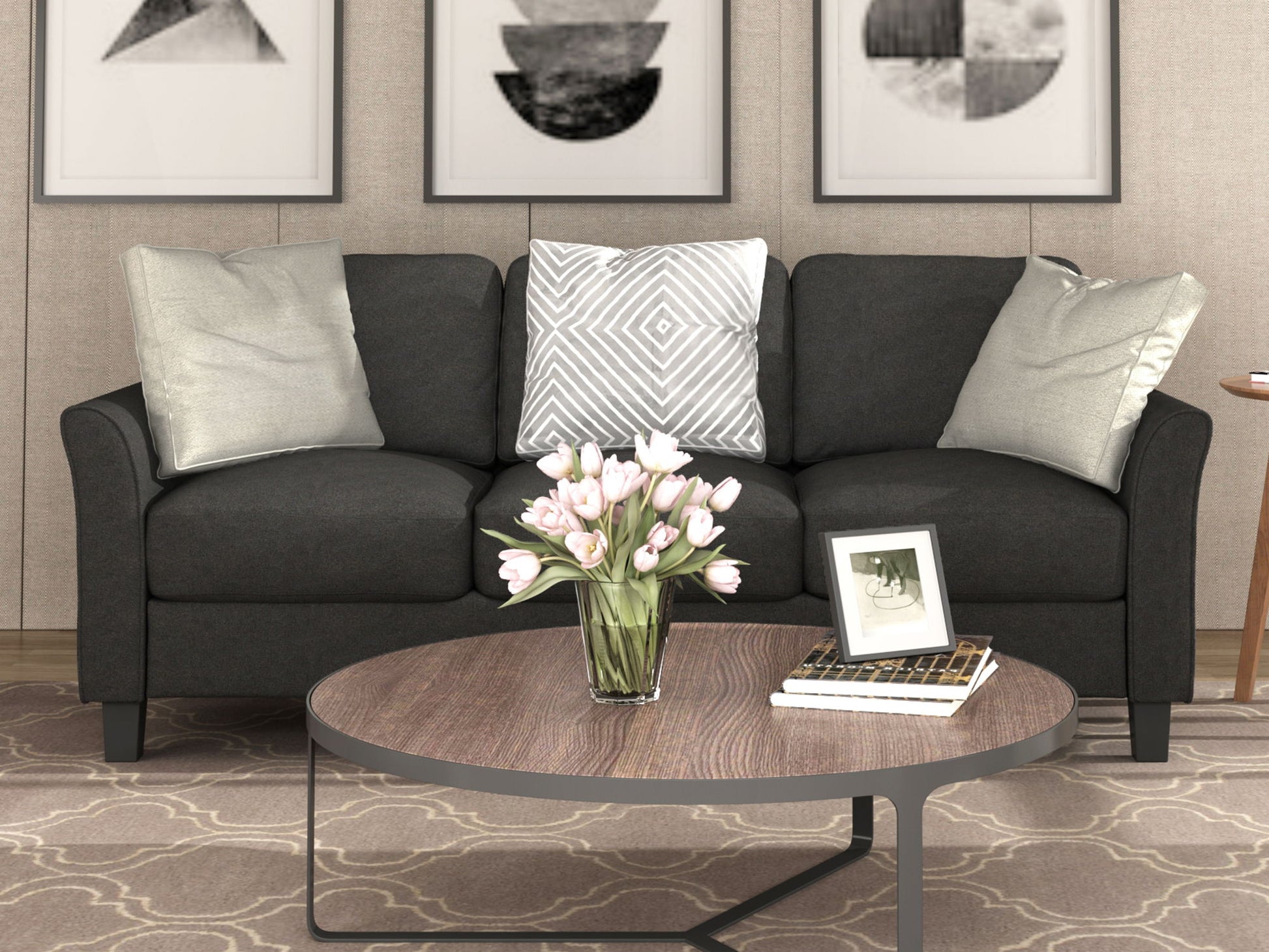 3 Seat Sofa Living Room Linen Fabric Sofa - Black