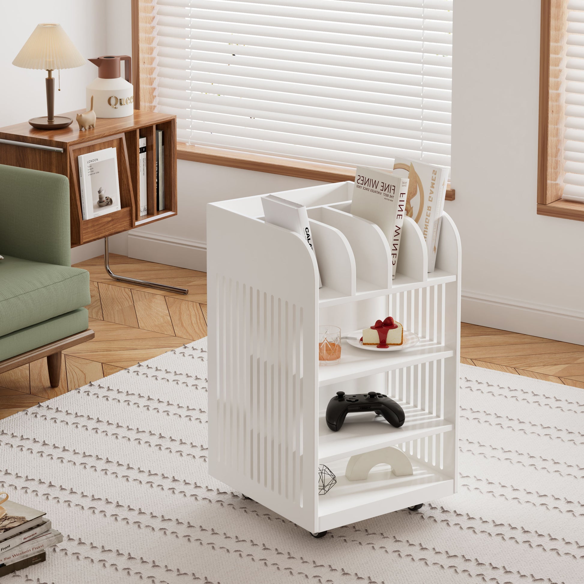 Multifunctional Organizer: Sturdy kitchen island for storing condiments, utensils, beverages, and more. Doubles as a side table for parties. Plenty Of Storage Space: This kitchen cart has 6 tiers of open shelves, including 4 tiers on the front and 2 tiers on the back. It provides ample storage space for your kitchen and dining essentials. Durable & Sturdy: Made of high-quality MDF for a sturdy structure. Smooth surface that is easy to clean. Movement Freely: The mobile kitchen cart has 4 silent caster wheels on the bottom (2 of them with brakes), which can be used to fix the position, push and pull flexibly. Easy To Assemble: Comes with detailed instructions and labeled parts for quick and easy assembly. Can be assembled by 1-2 people in about 20 minutes.