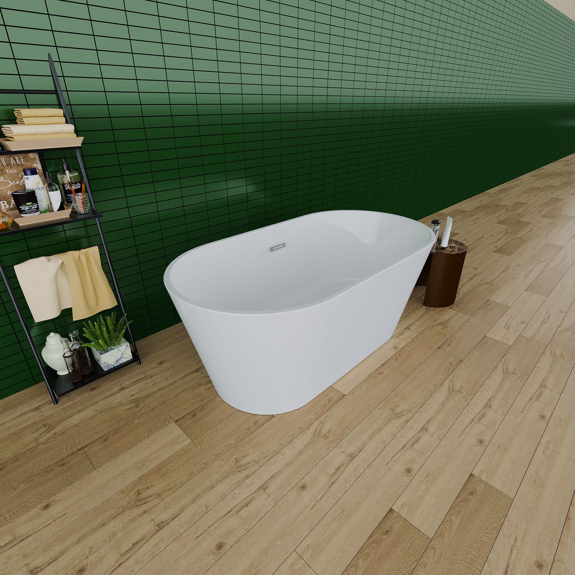 55.12" x 31.1" Acrylic Freestanding Bathtub, Contemporary Soaking Tub With Chrome Overflow And Drain I Cupc Certified For Quality Assurance, 22A02-55 - Glossy White