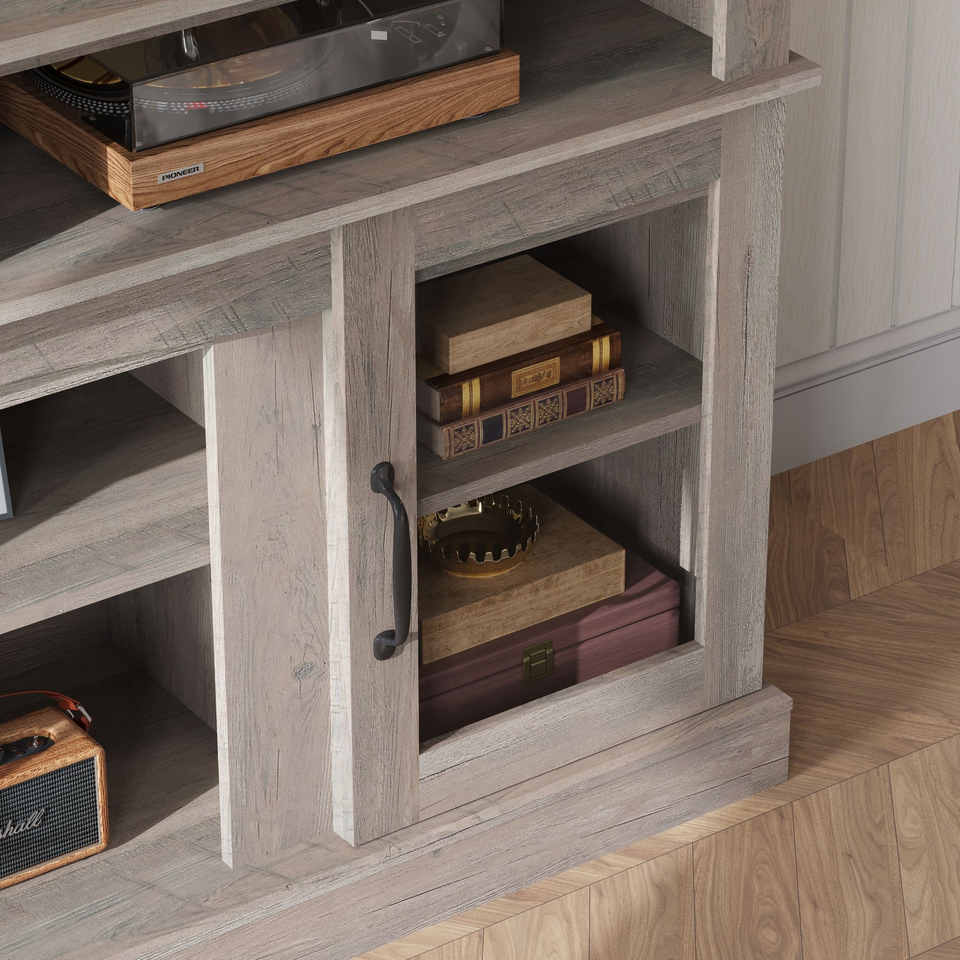 • Vintage Mid-Century Look: Doors feature a unique stripe pattern for a retro vibe.
