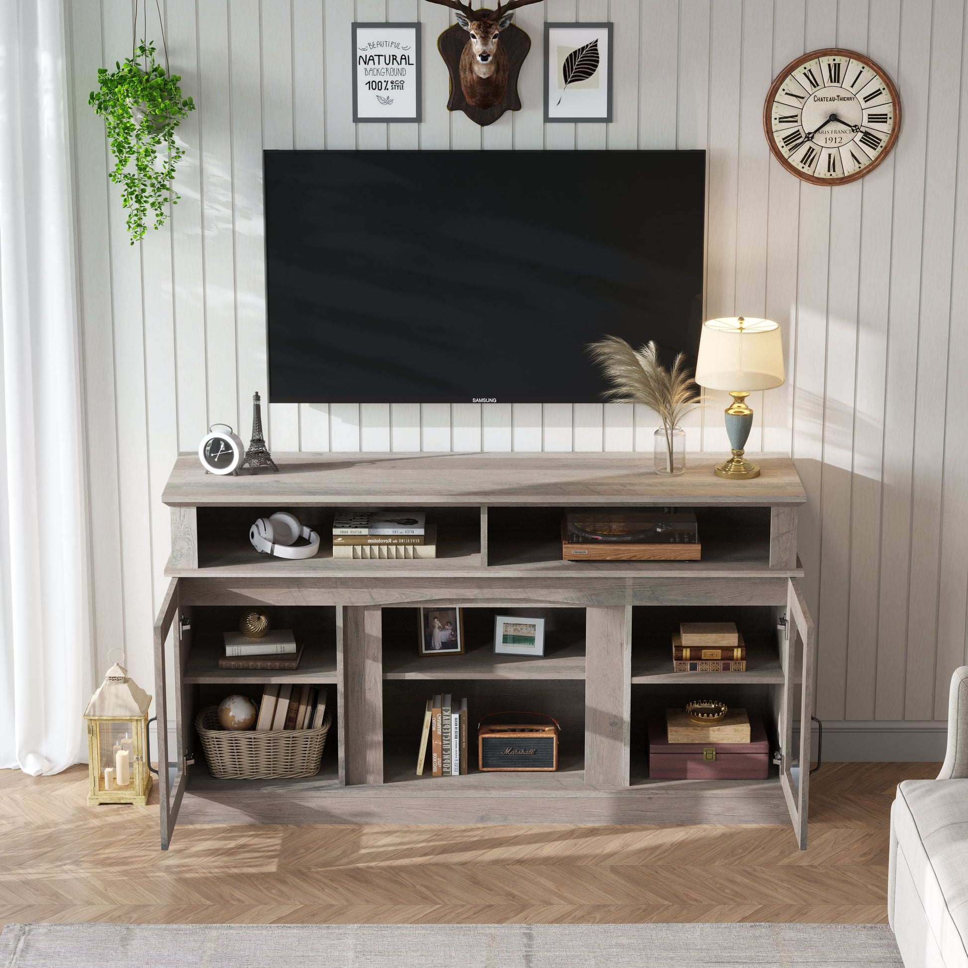 58.27" TV Stand With Storage Cabinet And Shelves, TV Console Table Entertainment Center For Living Room, Bedroom - Gray