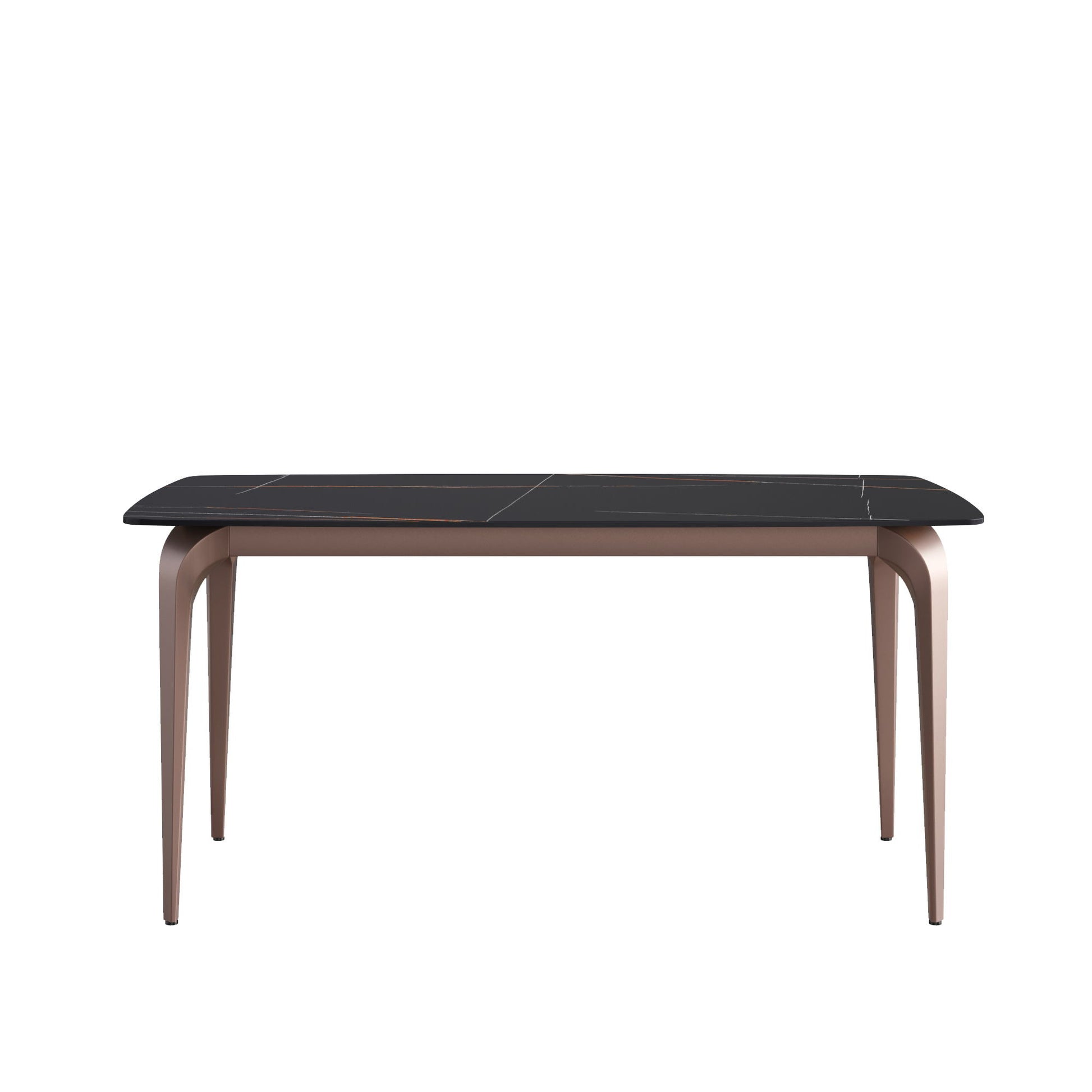 63" Modern Artificial Stone Black Curved Metal Leg Dining Table, 6 People - Black