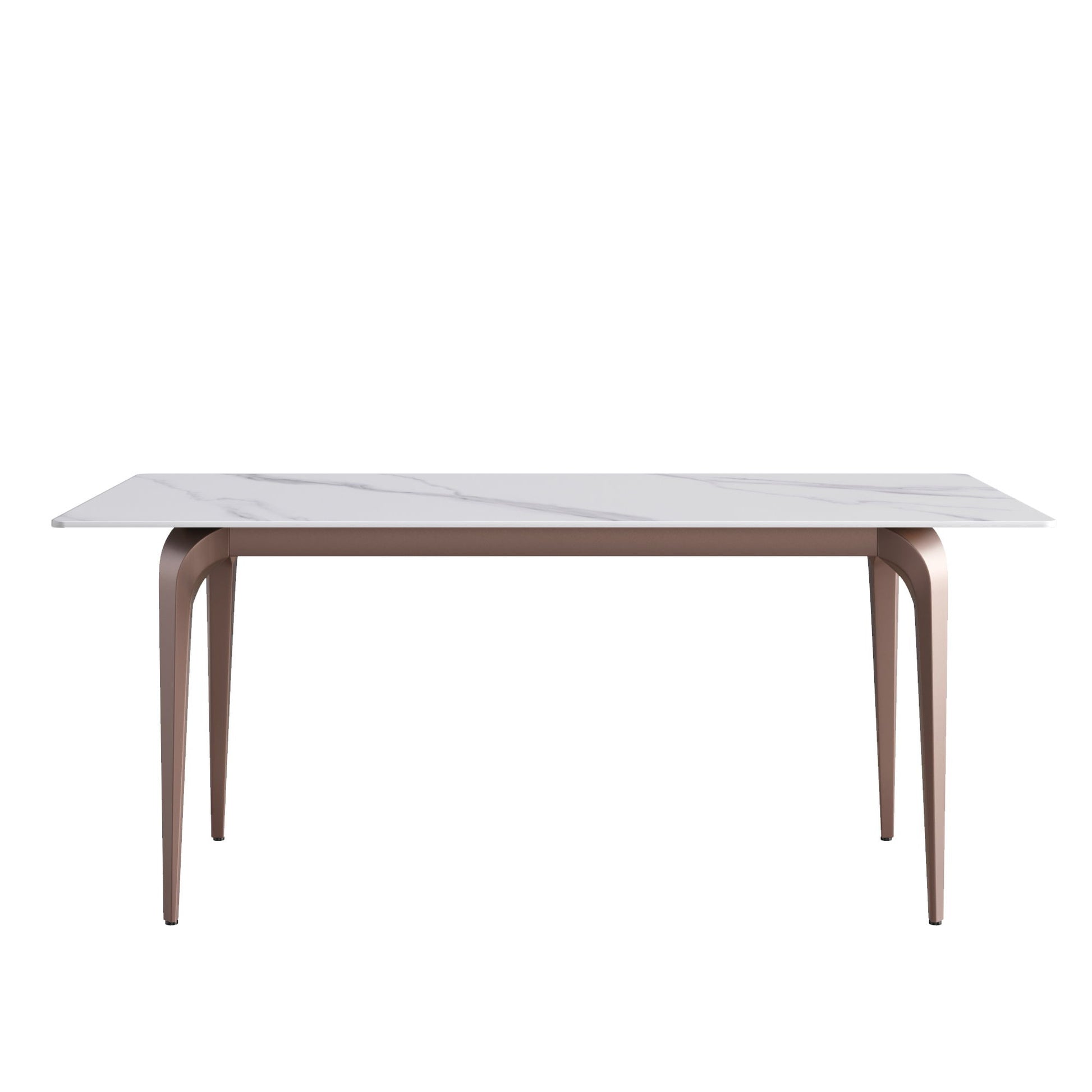 70.87" Modern Artificial Stone Straight Edge Metal Leg Dining Table, Can Accommodate 6-8 People - White