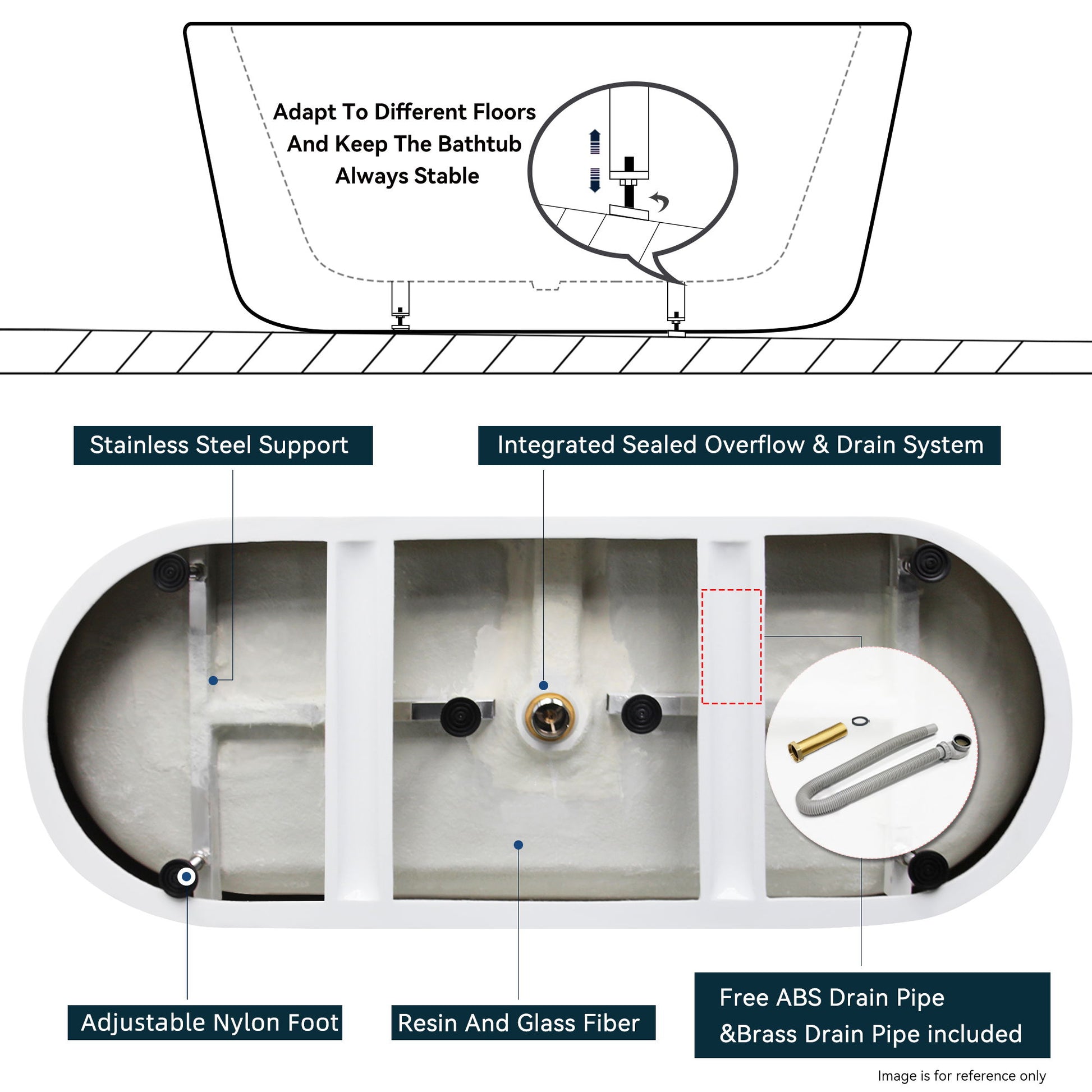 - Premium Quality: Bright White Acrylic reinforced by fiberglass, eco-friendly, durable, and easy to clean.