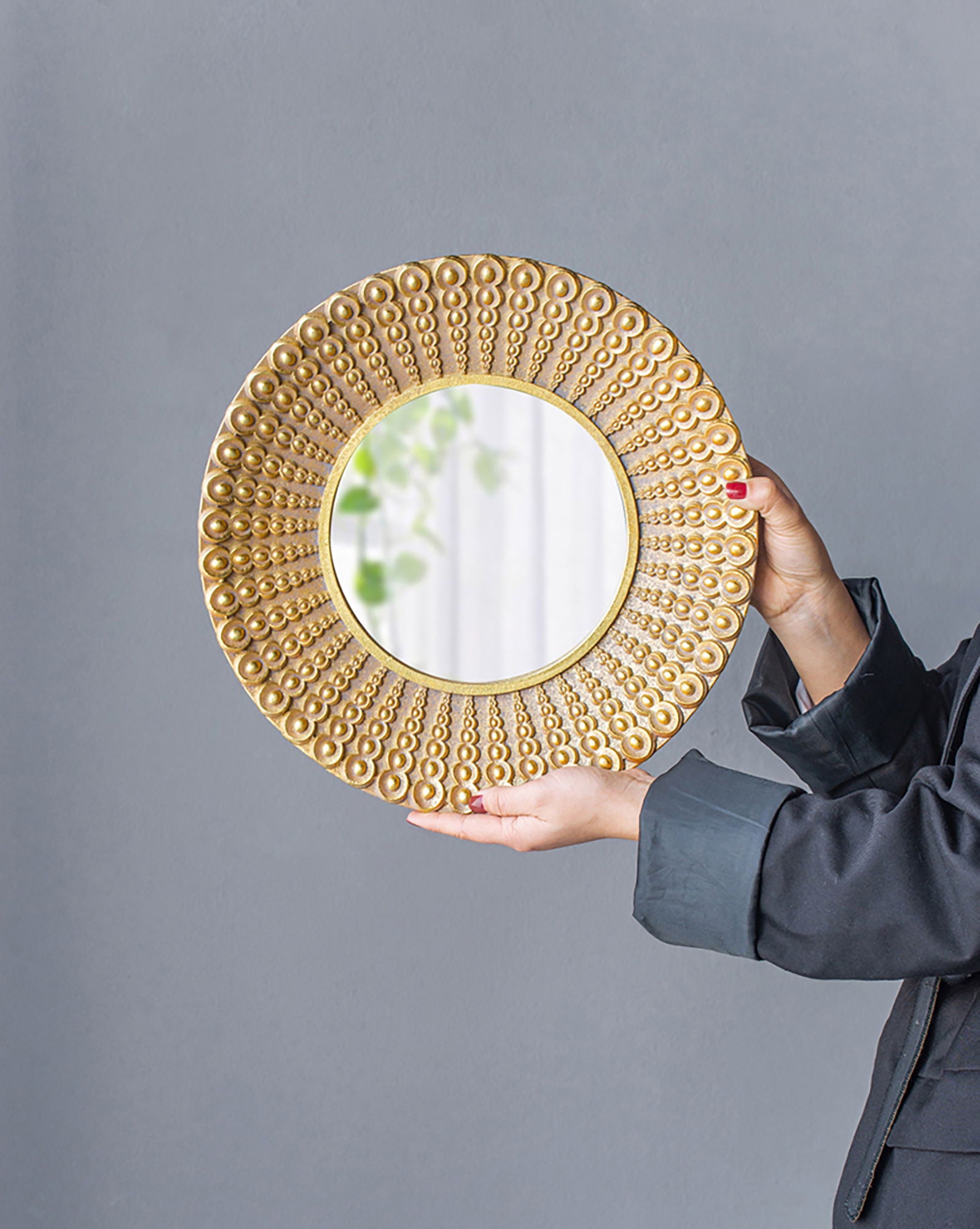 Beaded Sunburst Mirror, Round Accent Wall Mirror For Living Room, Entryway, Bathroom, Office, Foyer - Gold