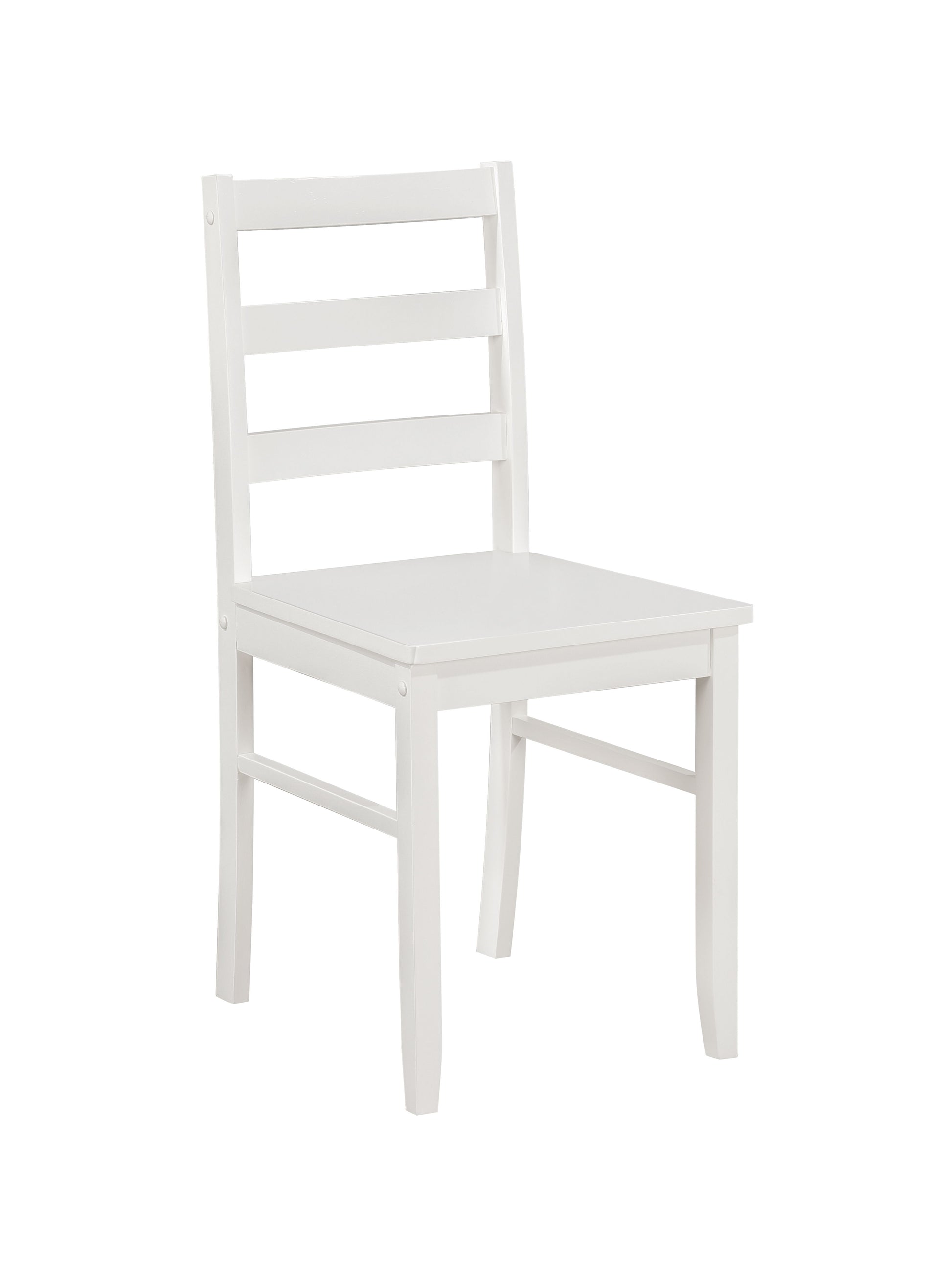 - The Lavinia 5-Piece Dining Set, a stylish and functional addition to your dining area. This set comprises a rectangular table and four side chairs, each designed with a classic white finish to complement any decor. The table offers a compact space for dining or entertaining, while the chairs provide ergonomic support and a touch of sophistication with their ladder backrests. Whether you're enjoying a cozy family dinner or hosting guests, this dining set offers the perfect setting to create lasting memories. Upgrade your dining space today with the Lavinia Dining Set and experience the joy of dining in style and comfort.