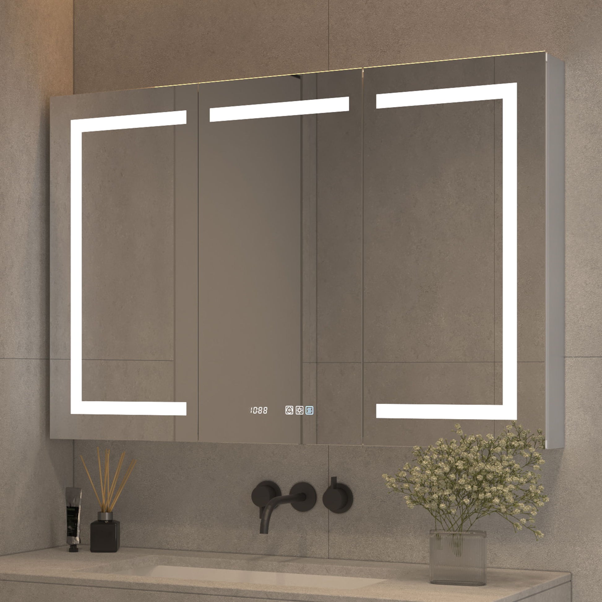 Multi-Functional Smart LED Medicine Cabinet, 48*32", Touch-ContRolled Lighting With Anti-Fog, Modern Bathroom Vanity Mirror - Silver