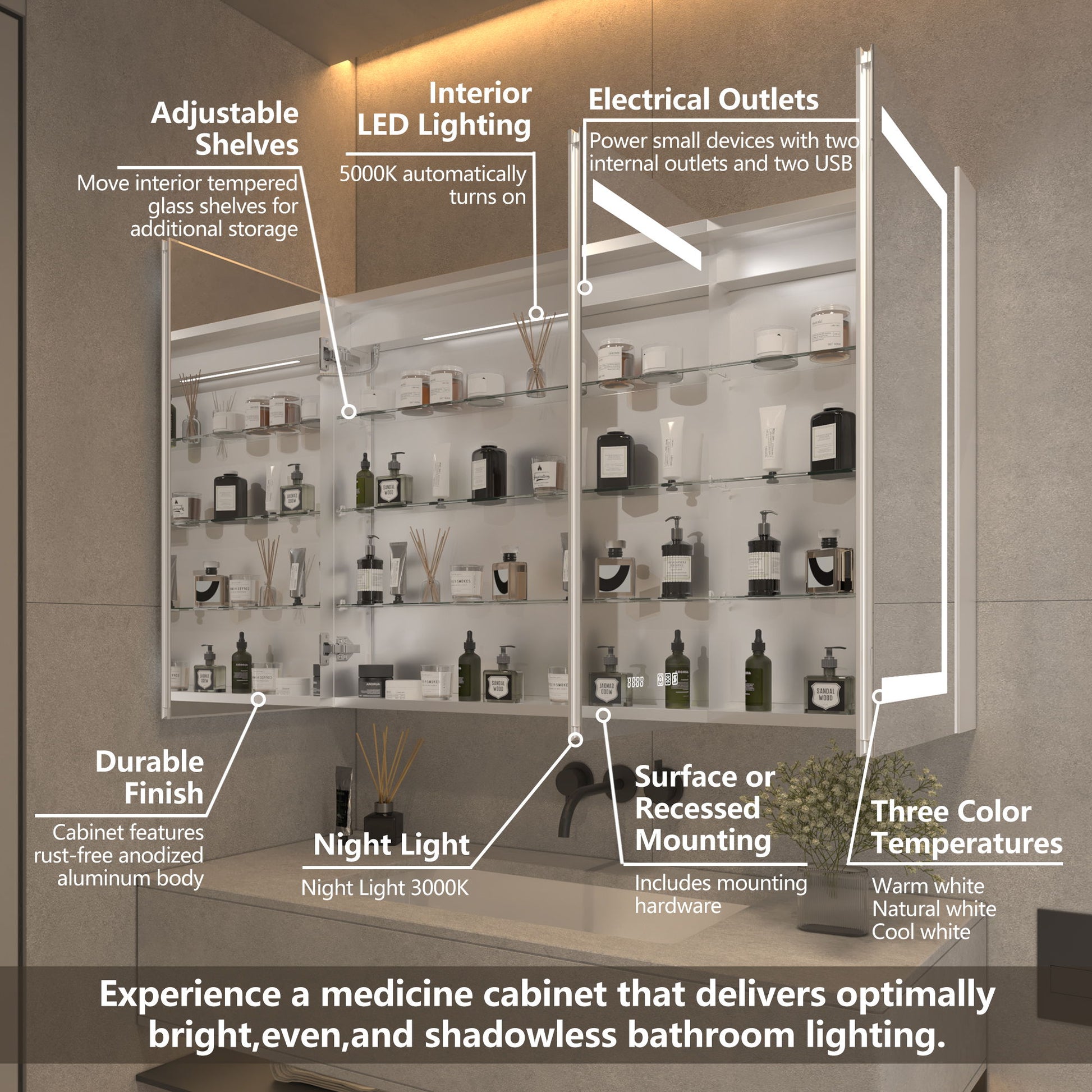 - Color Temperature Modes: Effortlessly switch between cool white, natural white, and warm white lighting.