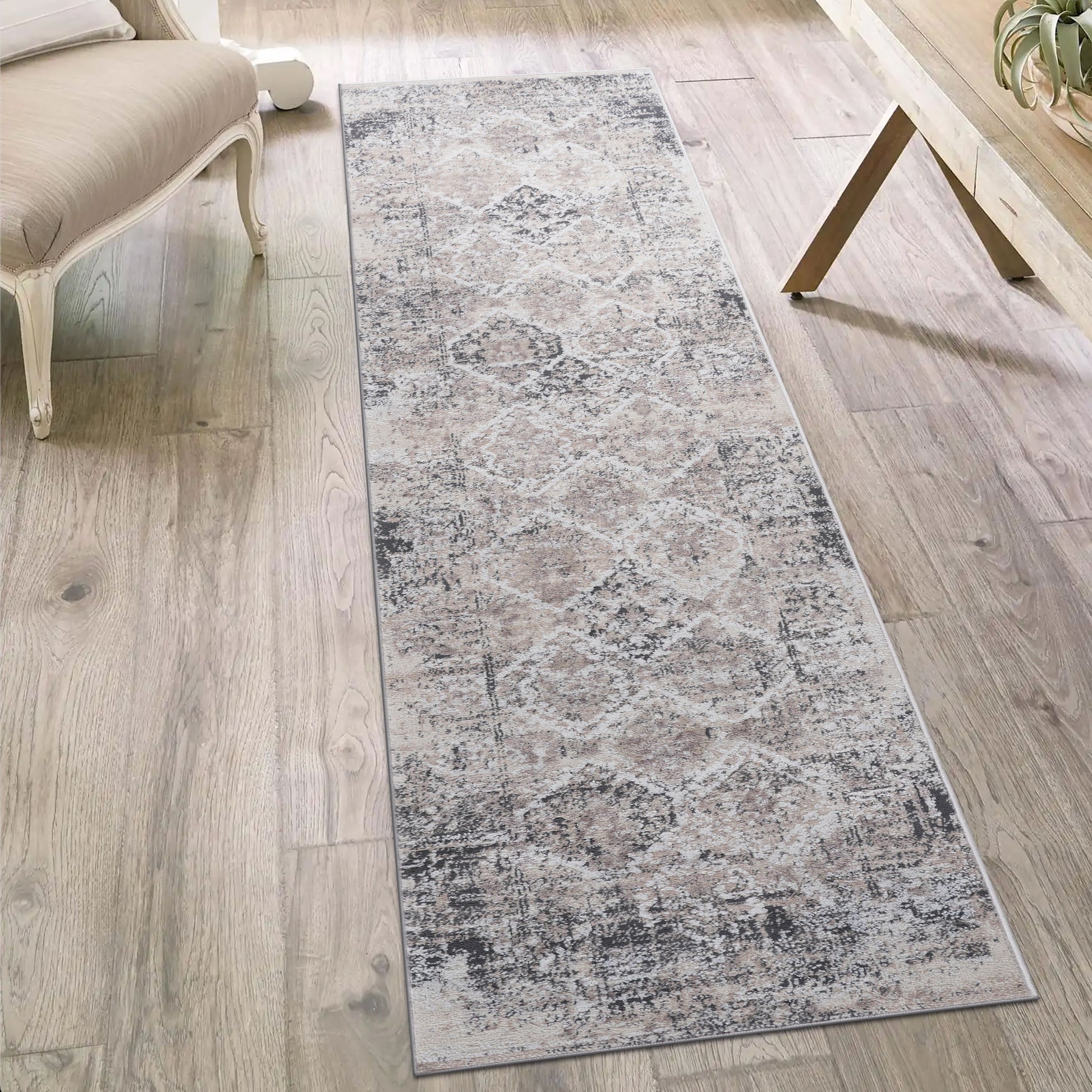 Payas - 2' x 8' Traditional Non-Shedding Living Room Bedroom Dining Home Office Stylish And Stain Resistant Area Rug - Cream / Anthracite