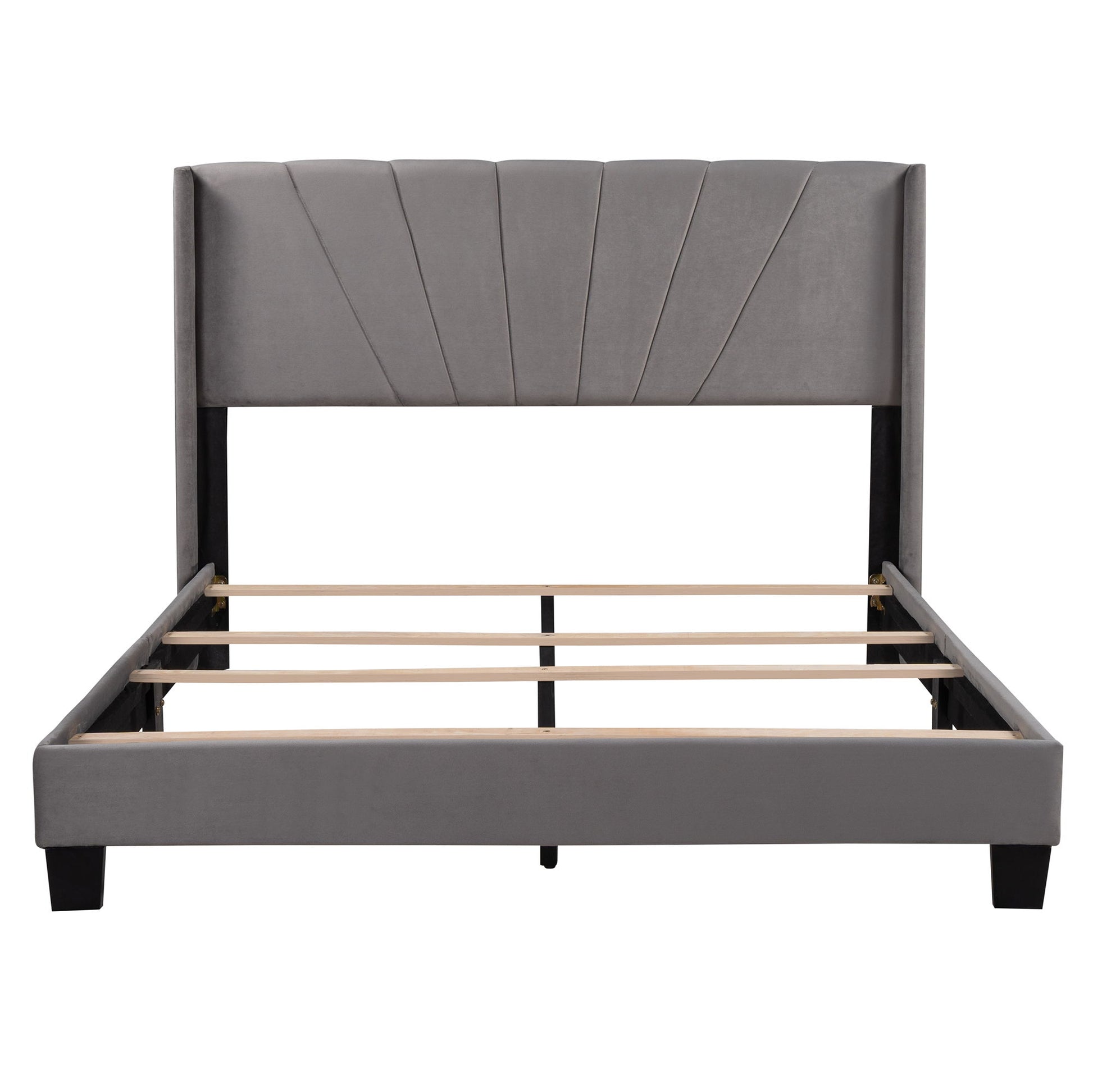 Queen Size Velvet Upholstered Platform Bed, Box Spring Needed - Gray