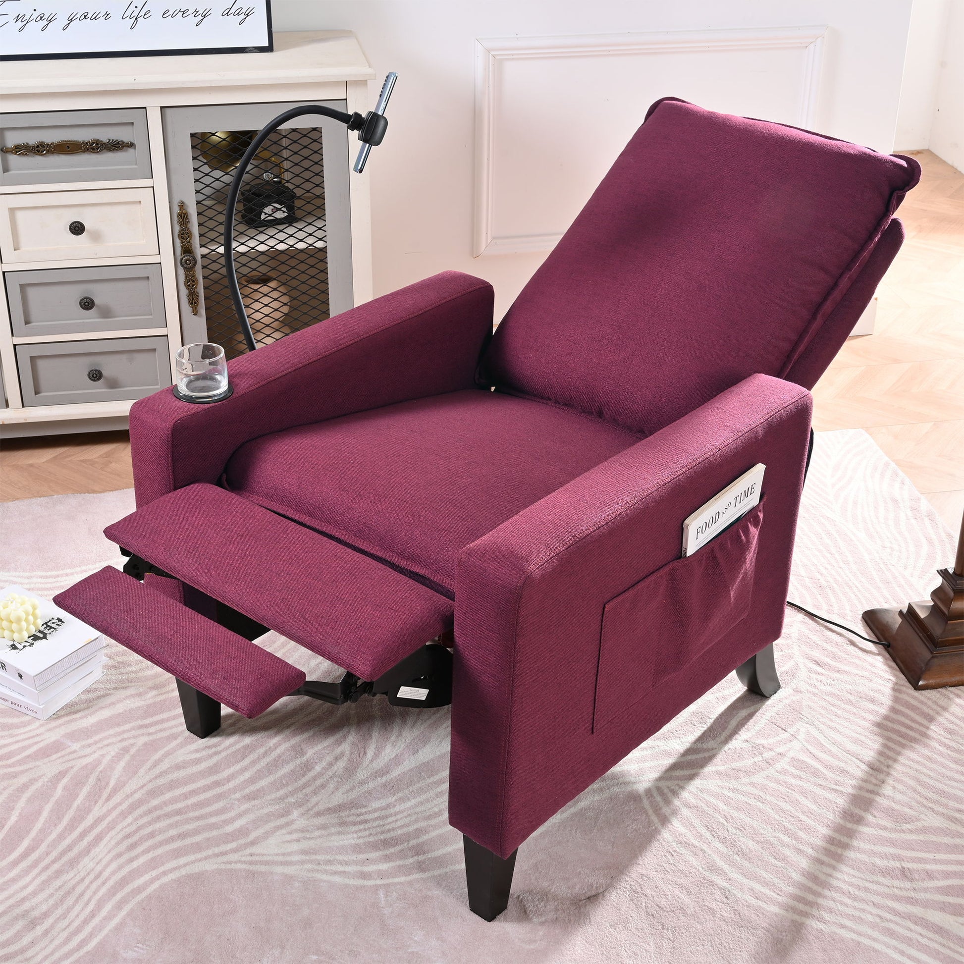 Recliner Chairs For Adults, Adjustable Recliner Sofa With Mobile Phone Holder & Cup Holder, Modern Reclining Chairs Fabric Push Back Recliner Chairs For Living Room, Bedroom
