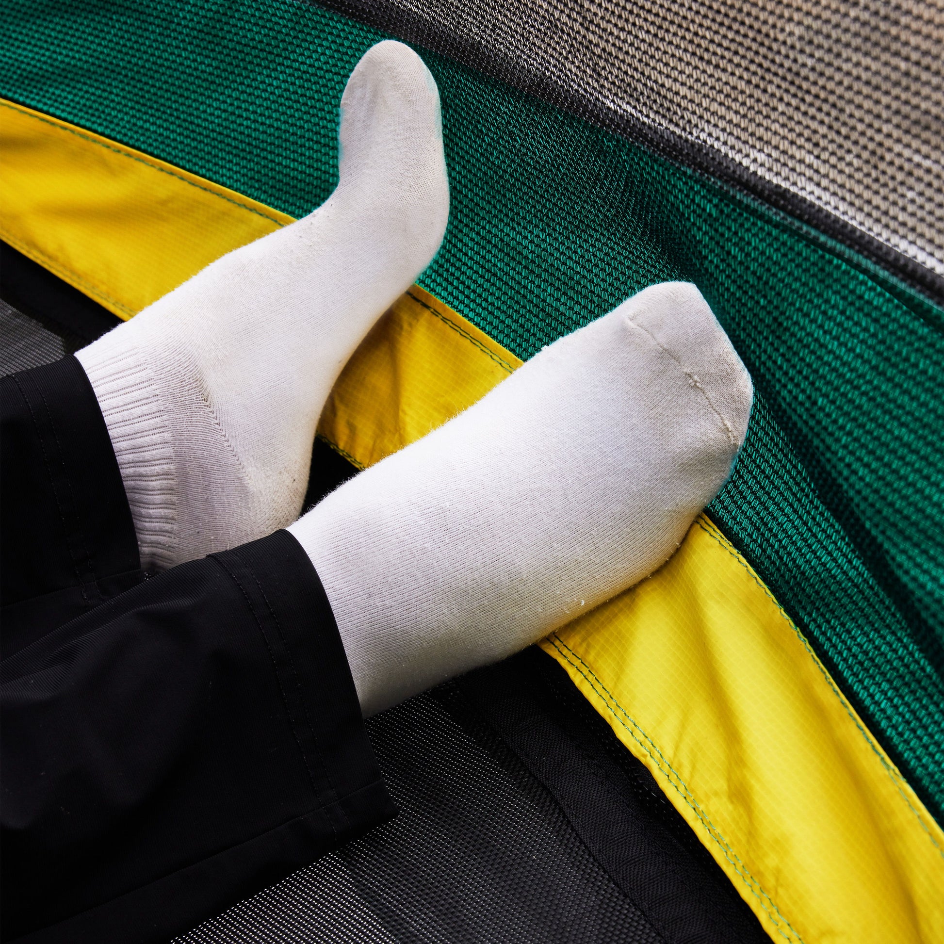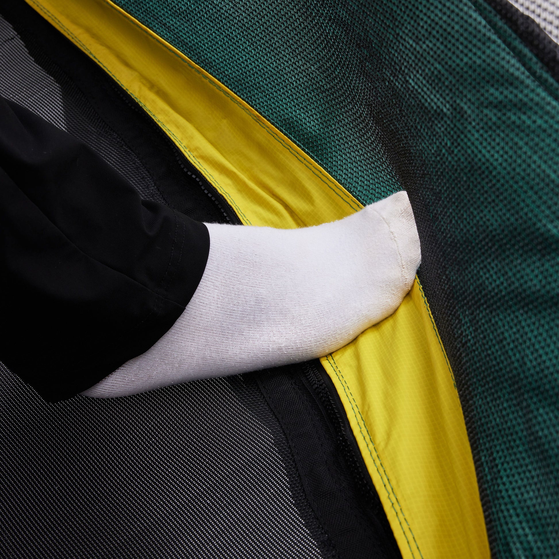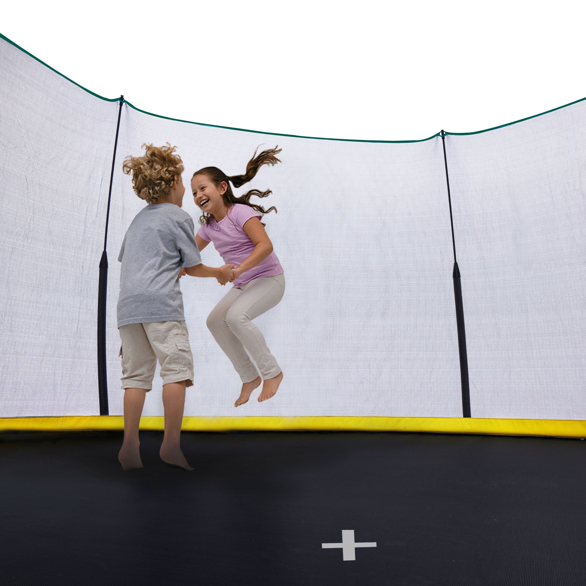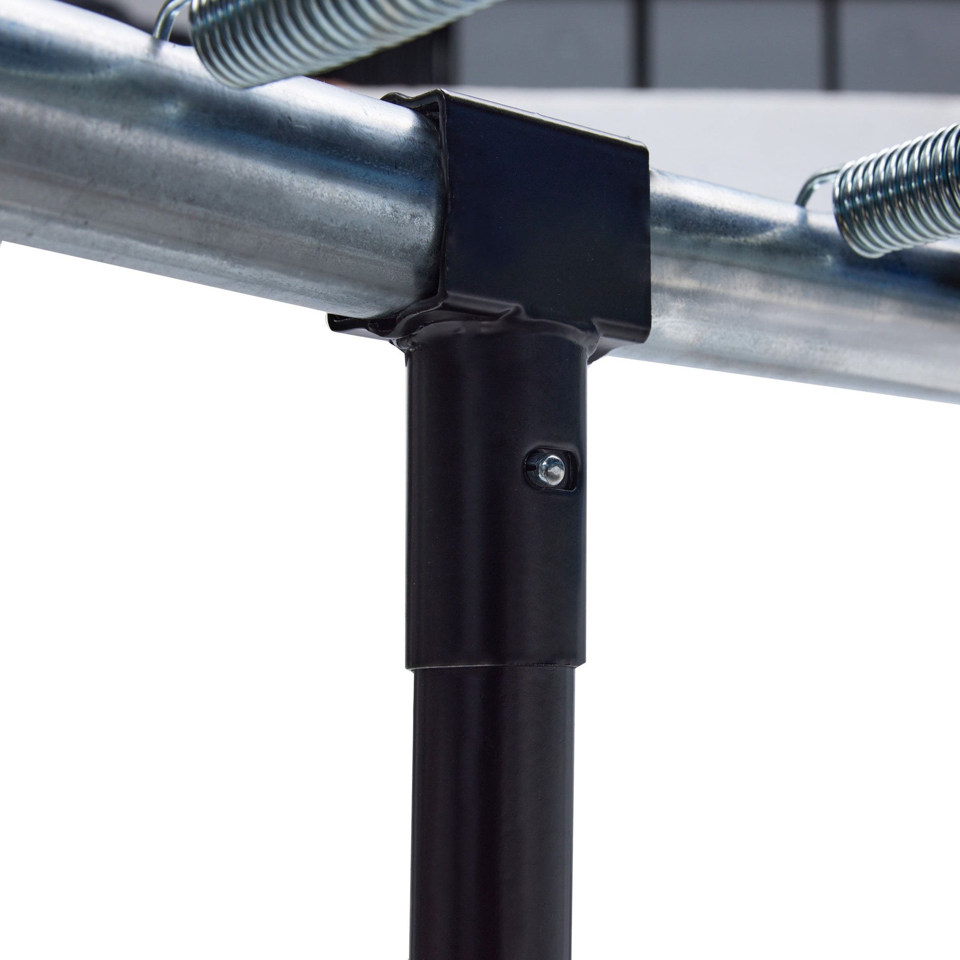 Durable Materials: Galvanized steel frames with powder-coated legs and T-connectors ensure long-lasting durability and rust resistance. Enhanced Stability: Features W-shaped legs with black powder coating for stability and longevity, along with 56 springs that pass rigorous fatigue tests. Safety Features: Upper fiberglass net poles offer durability and flexibility without rusting, while lower metal poles are foam-covered for added protection. Easy Assembly: High-density safety net attaches to the jumping mat with a zipper, reducing assembly time. Weather Resistant: Frame cover uses PVC tarpaulin material for UV protection and water resistance, extending its lifespan by up to compared to normal covers.