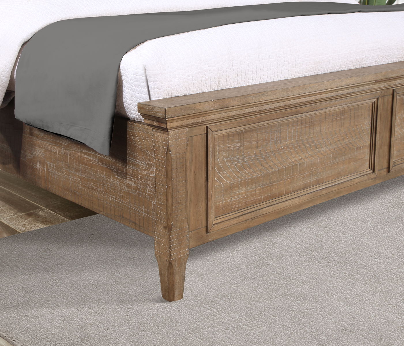 Experience the perfect blend of rustic design and refined style with the Panel Bed from the Riverdale collection. With a beveled headboard and picture frame footboard, this bed exudes rustic charm and modern elegance, enhanced by a distressed finish that adds character and warmth. The substantial top rail and tapered legs provide a sturdy and durable foundation, while the mix of materials creates a unique and inviting atmosphere. the embodiment of Modern Ranch design at its finest. Experience the perfect blend of comfort and style with the Riverdale Panel Bed and indulge in a restful night's sleep in this one-of-a-kind Modern Ranch bed.