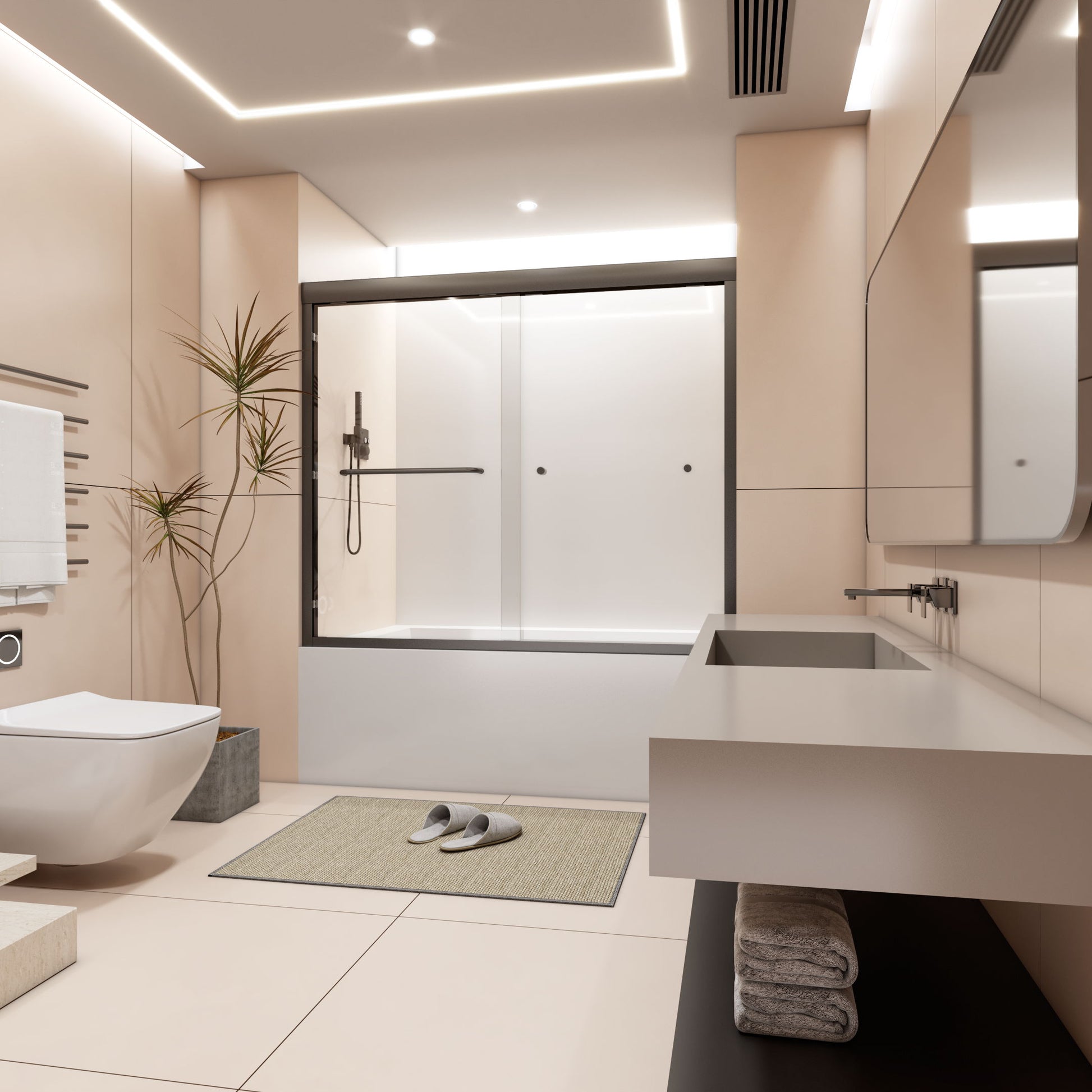 Semi-Frameless Double Sliding Tub Door, Bypass Bathtub Shower, 1 / 4" (6Mm) Thick SGCC Tempered Glass Door - Black