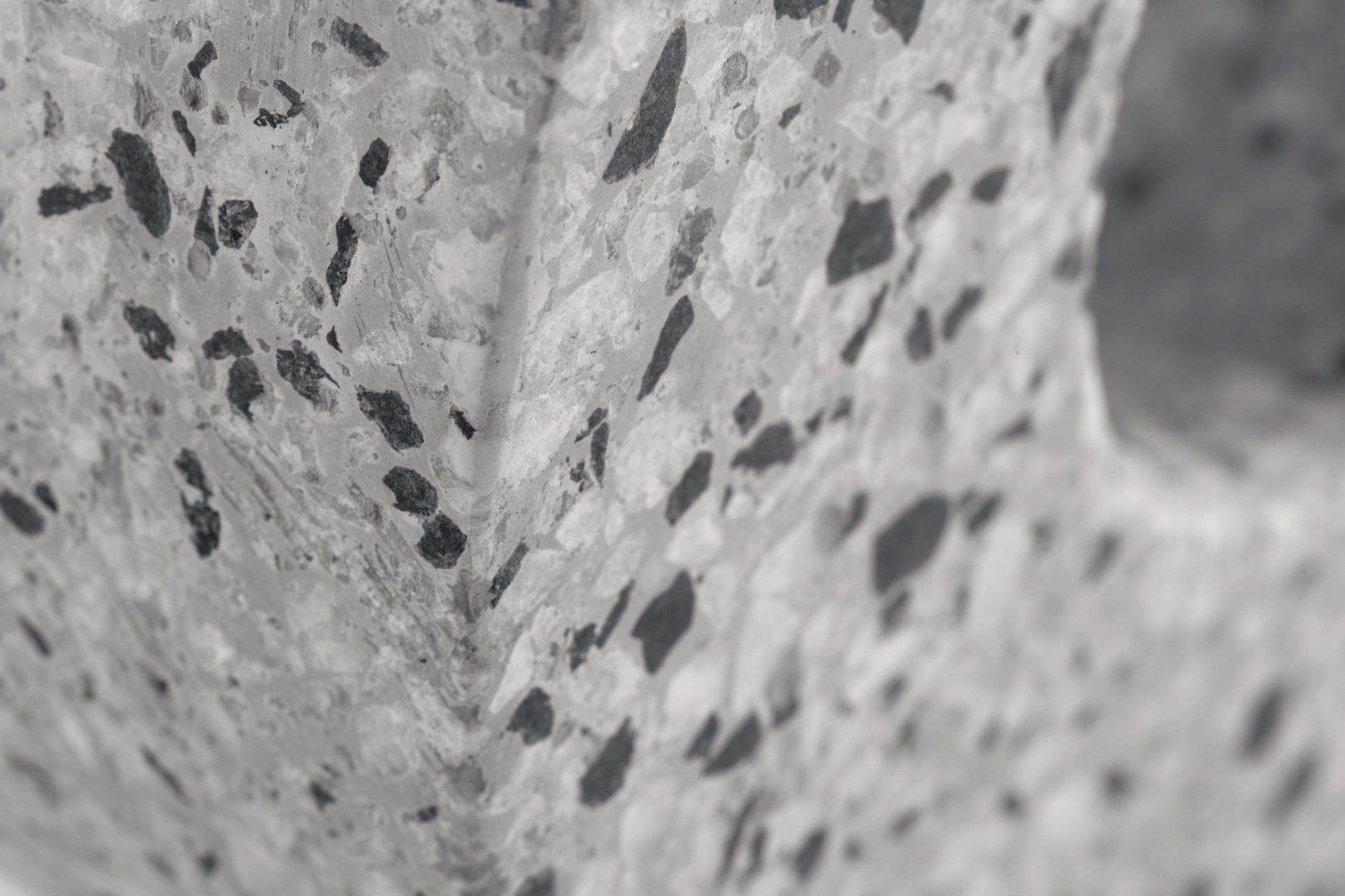 Bring a shelf, table or desk full circle with a cool touch of contemporary art. With its black and white marble flecks, this cement sculpture is striking from every angle.
