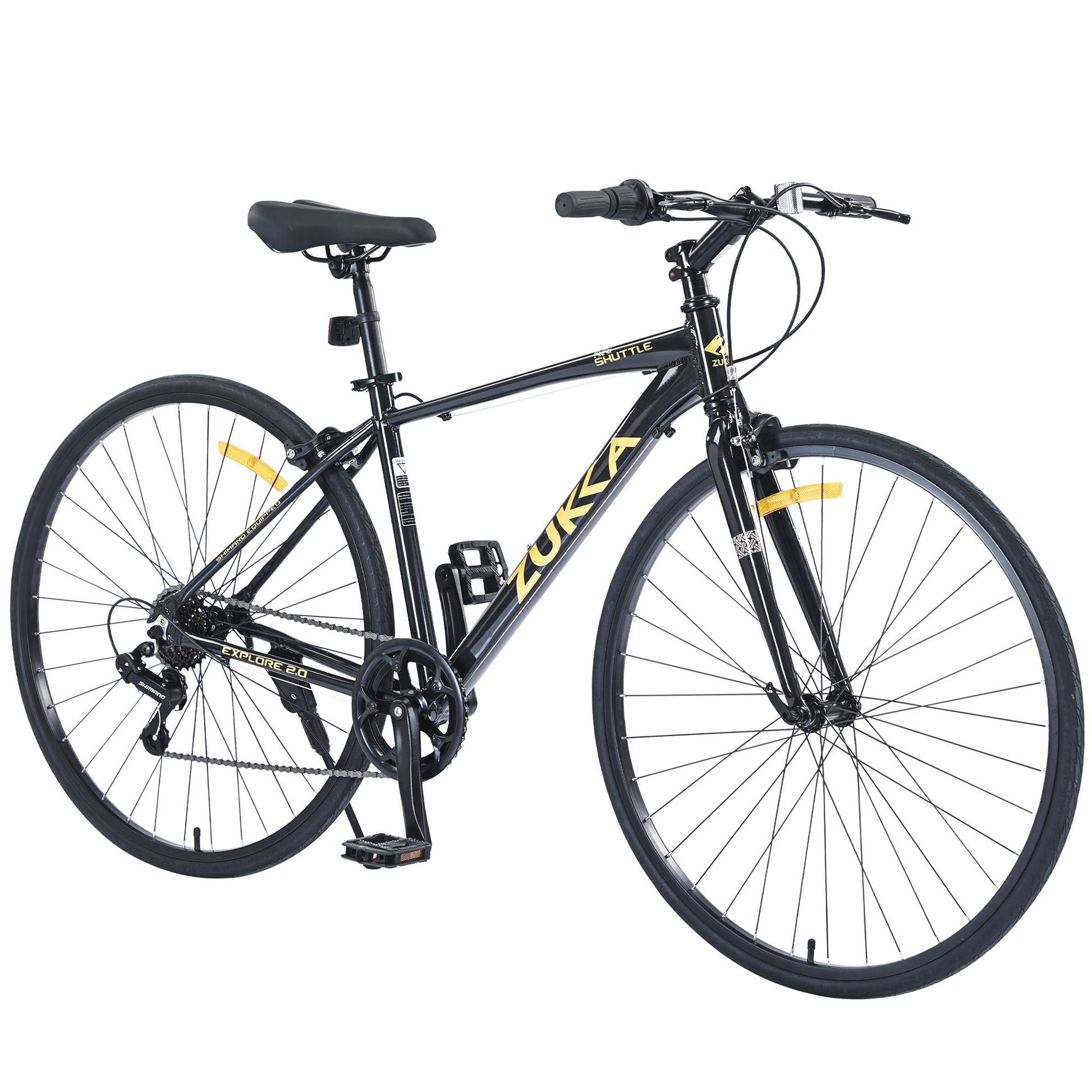 Shimano - 7 Speed Hybrid Bike Aluminum Alloy Frame C-Brake 700C Road Bike For Men Women's City Bicycle - Black